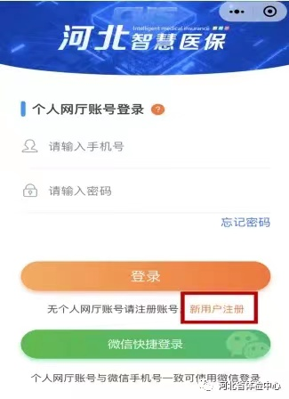 1.打开小程序“河北智慧医保”,登录账号或新用户注册。