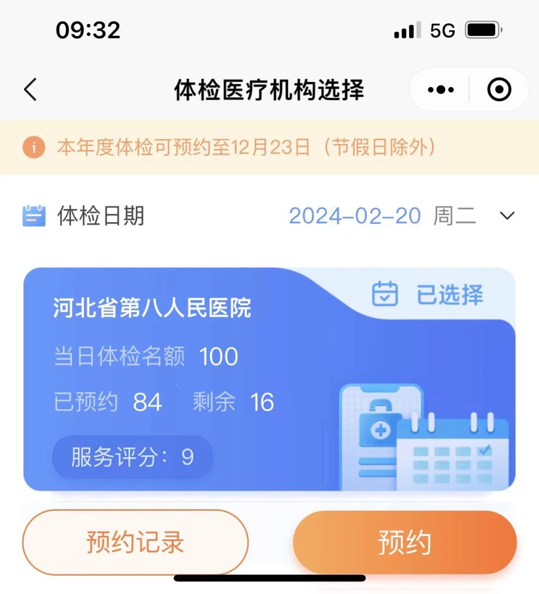 如果您不会网上预约或不会使用智能手机,请携带医保卡到河北省第八人民医院体检中心前台,我们协助您办理预约体检服务。