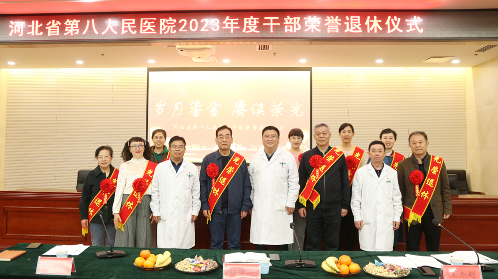 “莫道桑榆晚,为霞尚满天”。3月20日下午,河北省第八人民医院举行2023年度干部荣退仪式。省八院党委书记赵晓亮,党委委员副院长王杰超、索云锡及党办室、院办室、人事处、监察室等20余名科室代表出席会议。