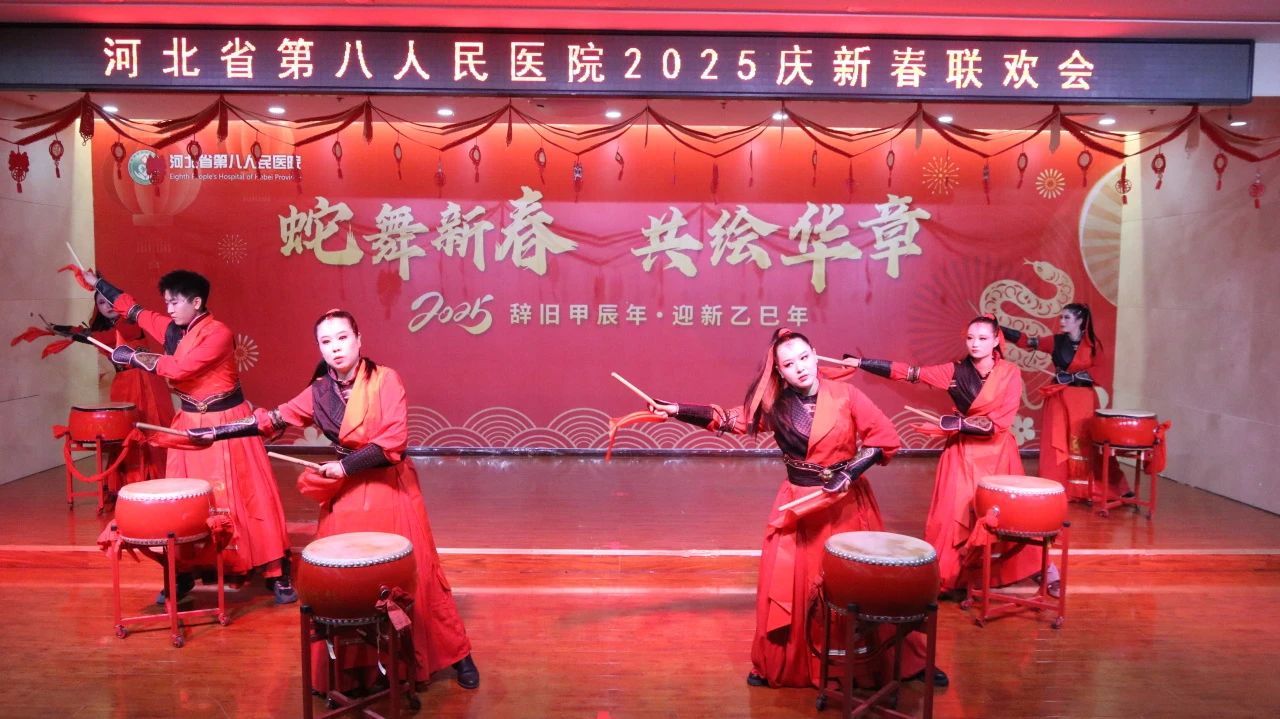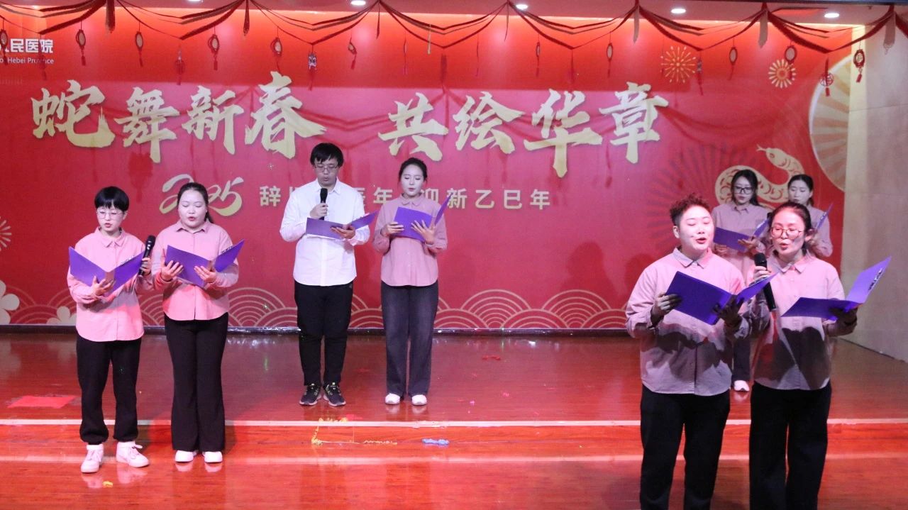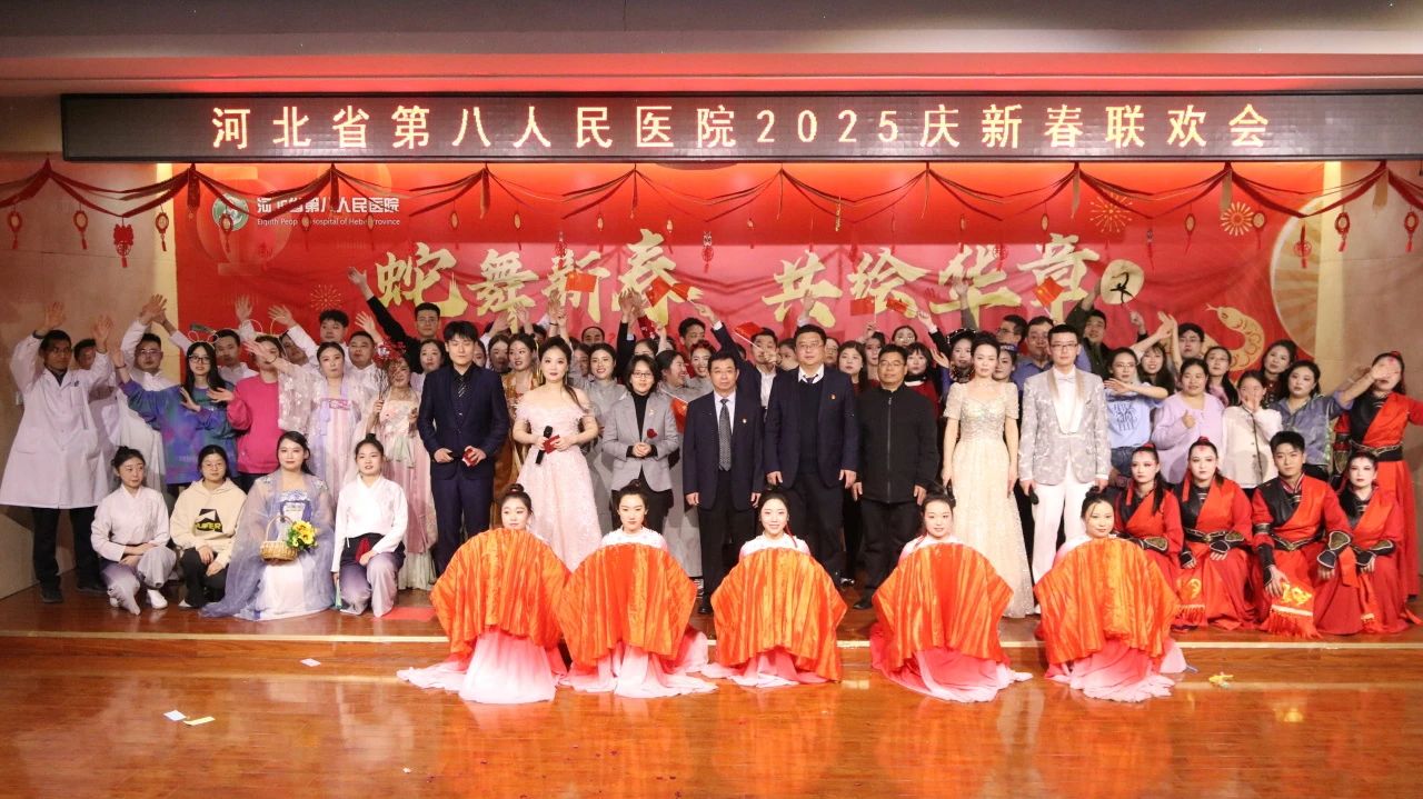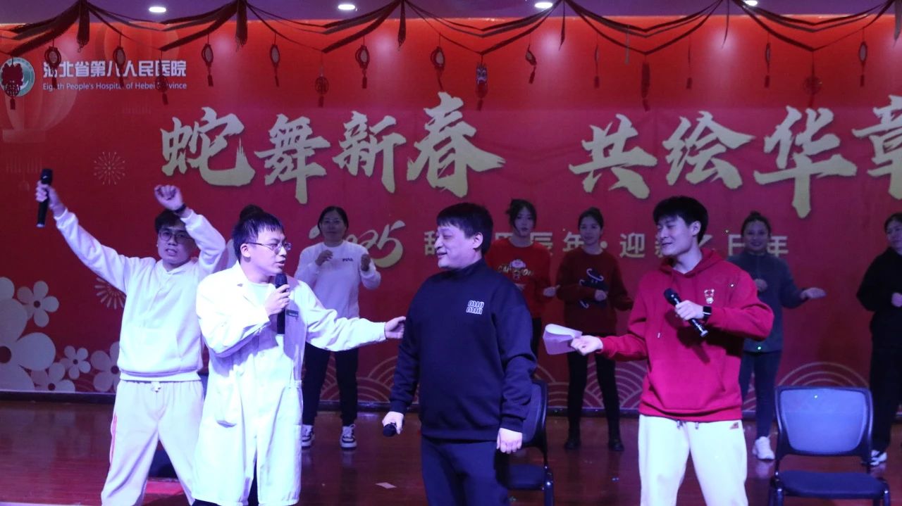 凯歌高奏辞旧岁,春风得意迎新年!为充分展示全院上下朝气蓬勃,凝心聚力的精神风貌,抒发新一年砥砺前行、锐意进取的澎湃之情。1月22日下午,河北省第八人民医院举办以“蛇舞新春,共绘华章”为主题的新春联欢会。医院领导班子及各临床医技科室、行政后勤等欢聚一堂,共同欢庆这一美好时刻。