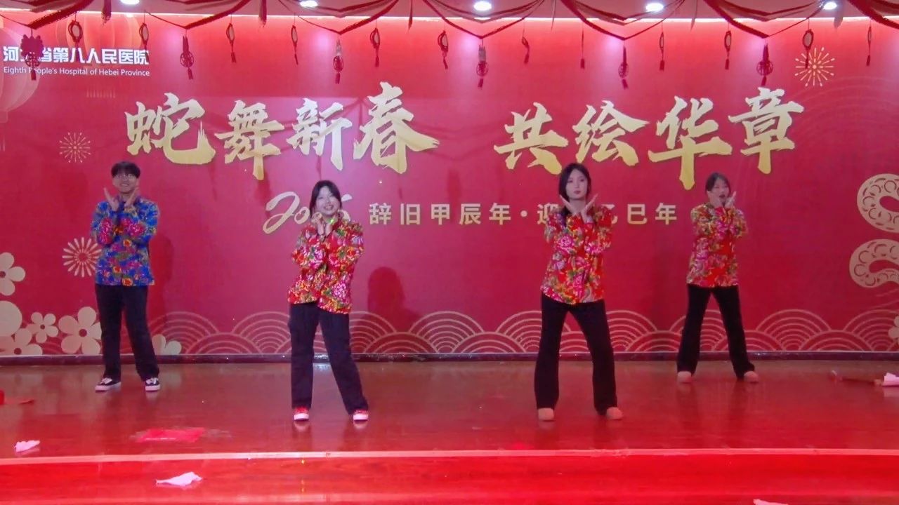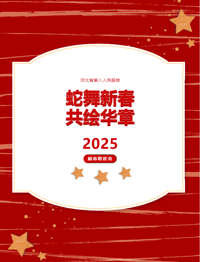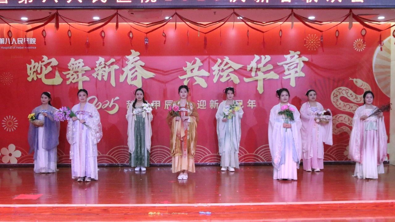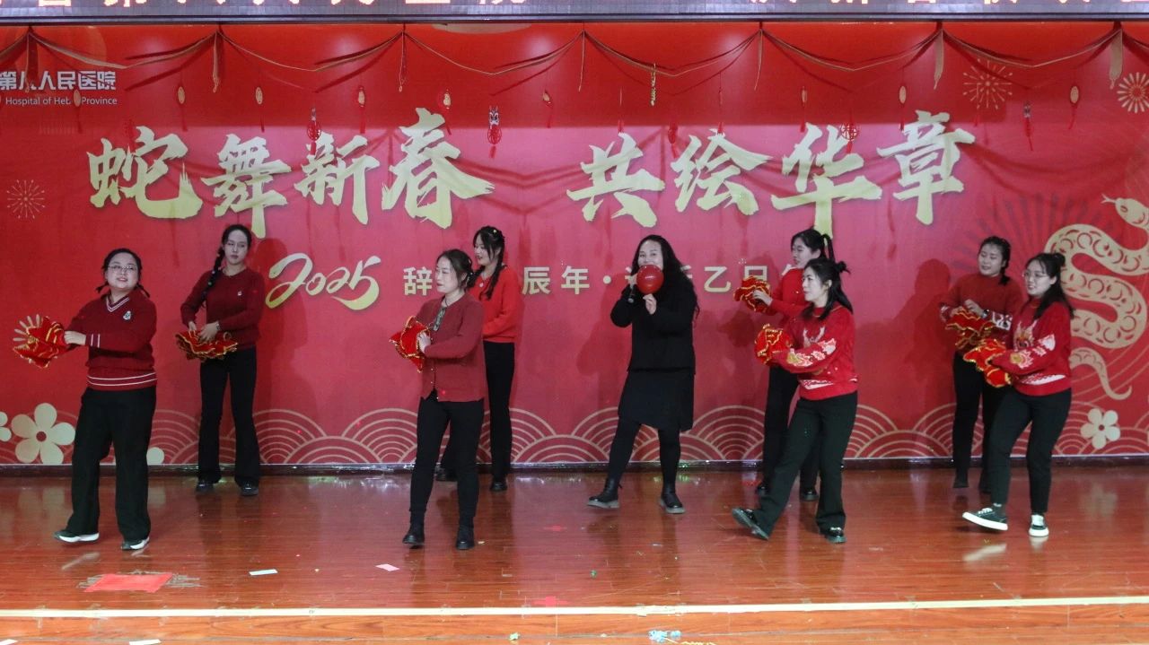 凯歌高奏辞旧岁,春风得意迎新年!为充分展示全院上下朝气蓬勃,凝心聚力的精神风貌,抒发新一年砥砺前行、锐意进取的澎湃之情。1月22日下午,河北省第八人民医院举办以“蛇舞新春,共绘华章”为主题的新春联欢会。医院领导班子及各临床医技科室、行政后勤等欢聚一堂,共同欢庆这一美好时刻。