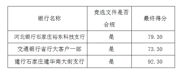 评选内容:河北省第八人民医院基本存款账户开户银行,根据我院相关要求设定评分规则,总分最高者为该账户开户行。现公开评选结果: